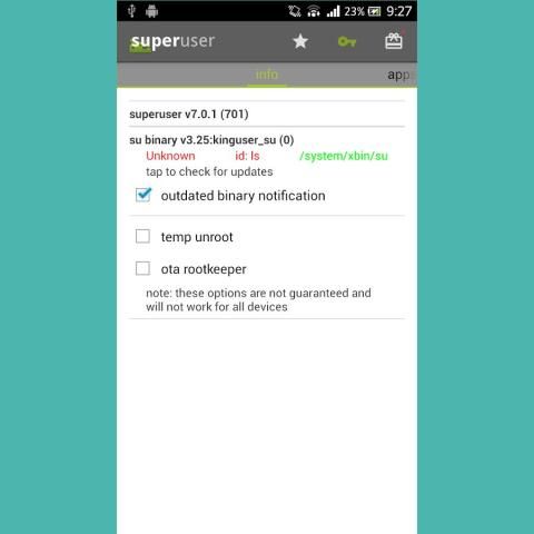 रूट का उपयोग की आवश्यकता है कि किसी भी एप्लिकेशन बारी में अनुमति के लिए उपयोगकर्ता संकेत करने के लिए इस एप्लिकेशन को कहता है जो सु बाइनरी कॉल करना होगा।