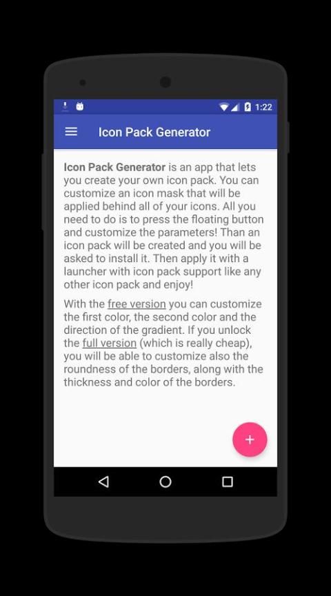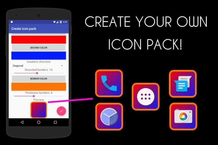 चिह्न पैक जनरेटर आप अपने स्वयं के चिह्न पैक बनाने की सुविधा देता है कि पहली app है! आप एक आइकन मुखौटा है कि अपने माउस के सभी के पीछे प्रदर्शित किया जाएगा अनुकूलित कर सकते हैं। आप कुछ मानकों को अनुकूलित कर सकते हैं और फिर आइकन पैक है कि आप को स्थापित करने के लिए कहा जाएगा निर्माण। तो फिर आप आइकन पैक समर्थन के साथ एक लांचर के साथ किसी अन्य आइकन पैक की तरह आइकन पैक लागू कर सकते हैं (उदाहरण के लिए: ADW, नोवा, एपेक्स ...)
