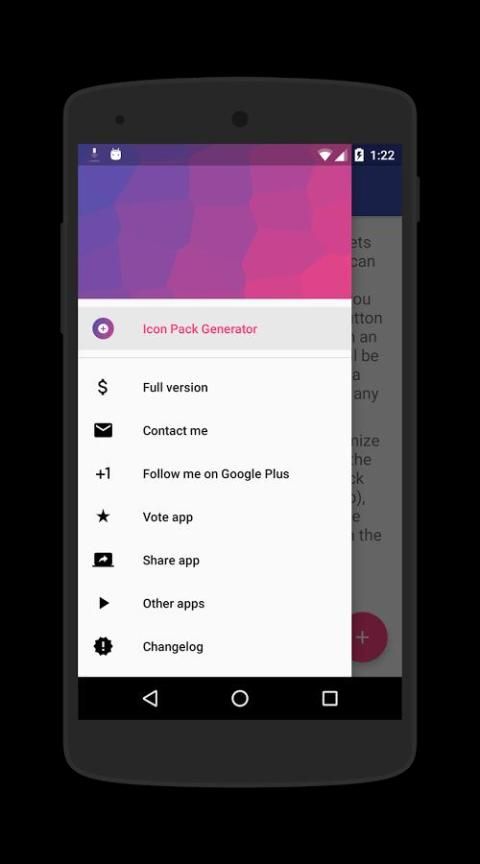 -Can मैं गूगल लांचर के साथ उत्पन्न आइकन पैक लागू होती है? नहीं, आइकन पैक सिर्फ playstore पर किसी अन्य आइकन पैक की तरह है, तो आप उन्हें लागू करने के लिए एक संगत लांचर की जरूरत (Nove, एपेक्स, ADW की तरह ...)