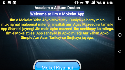 ilm seekhnay ko milega. Ilm e Mokelat jesi App sahayad hi Apko milegi Aur Yahan Apko Simple Aur Asan Tarikay se Smjhaya jayega.
