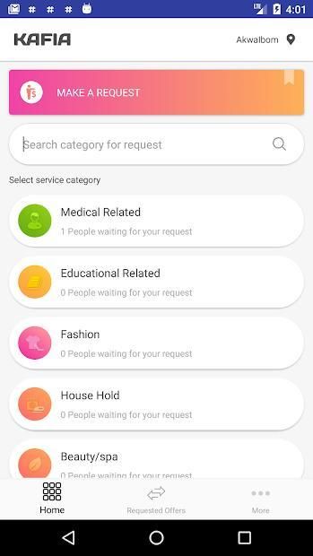 “Let’s say you need something done, or you want a specific need, either for products or services how do you get in touch with someone to start with? Who do you call? How do you get the contact of the guy who can perfectly change the leather seat of your car like it’s factory made? Or your phone's screen just broke, or perhaps you’ve got this severe pain in-between your fingers and you know you need the help of an acupuncturist...just make a simple request on #kafia, select the category and instantly get response quicker than learning the UFIA language...it’s all for free."