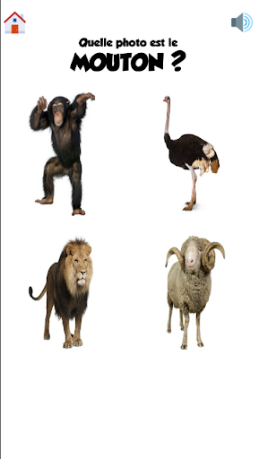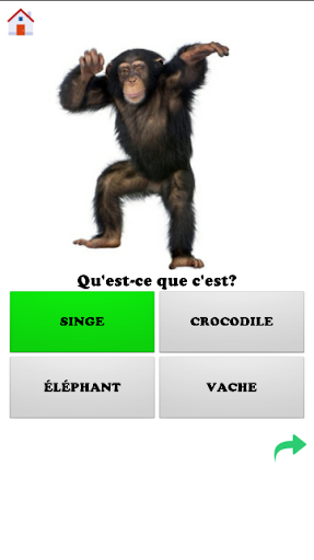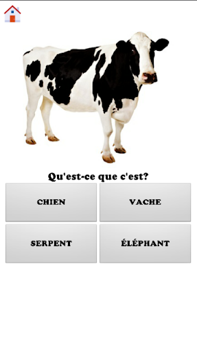 Game 2: One random French word from the elected category is displayed and you are asked to select the correct image from the options.