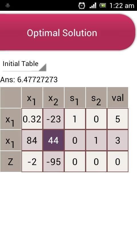 इस app रैखिक अनुकूलन आदि सिंप्लेक्स विधि और द्वैत एकल विधि का उपयोग कर समस्याओं को हल करती है.