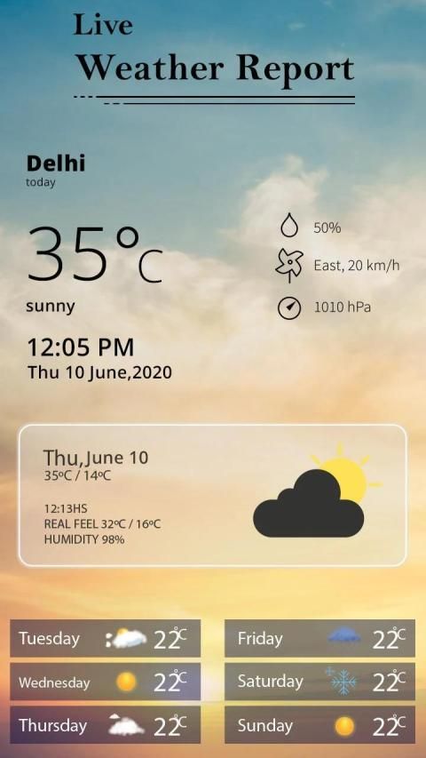 Live weather report can provide you hourly weather forecast, daily weather forecast, weekly weather report (7 day weather forecast), monthly weather report, 10 day weather report..