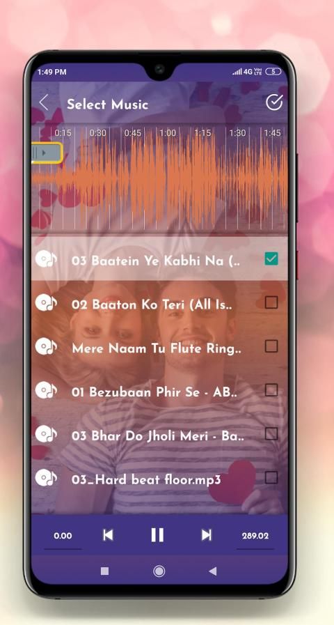 * अपने लव वीडियो के लिए लवली म्यूजिक चुनें।