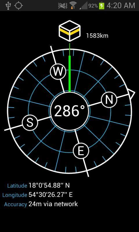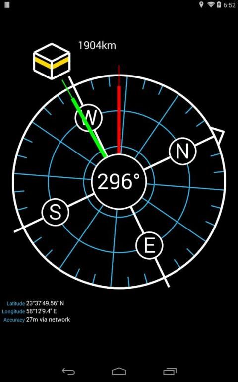 1. This app uses the built in compass to indicate bearing, the network (3G or WiFi) for an estimated location (optional), or the built in GPS for an exact location.