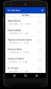 This App is used to store user tasks, which user will perform on their daily routine. User will add task in application, remove task, and view their tasks. User will view task name, task time and task status. If user complete their task, he/she will check task item or simple swap to delete task.