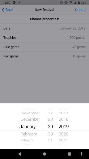 इस ऐप के साथ आप आसानी से गणना कर सकते हैं कि आपके शहर में कितने हीरे और रूबी आपके शहर में केवल ट्रॉफी पॉइंट्स की संख्या पर आधारित हो, केवल ट्रॉफी पॉइंट्स की संख्या पर आधारित (मूल विकल्प), या अर्जित ट्रॉफी पॉइंट्स की संख्या पर आधारित है और संख्यापूर्ण कार्यों (विकल्प 50/50 और 75/25)।