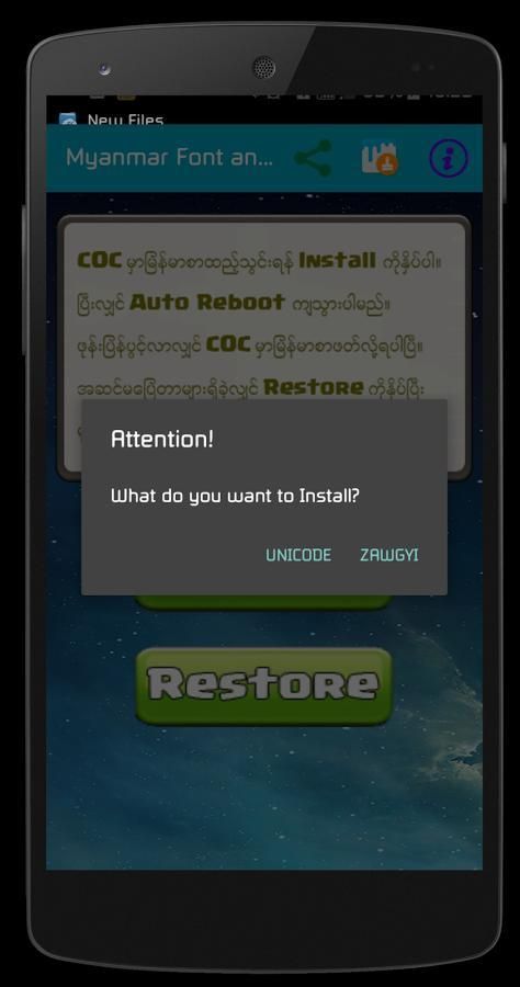 It’s time to update your mobile application. 20,000+ users downloaded Myanmar Font and Language 4COC latest version on 9Apps for free every week! All its functions are there and updated. This hot app was released on 2017-01-11. And it takes your phone small room to run it.