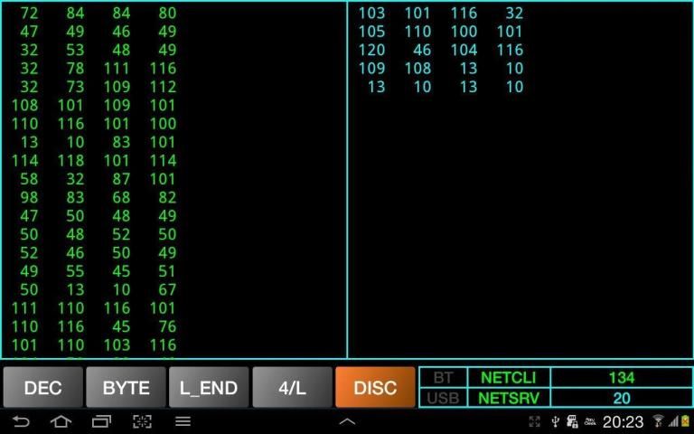 - प्राप्त बफर में बाइट्स की कुल संख्या एक दशमलव मान के रूप में प्रदर्शित किया जाता है;