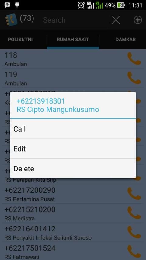 Applications that contain numbers are numbers important in emergencies including police, hospital, fire brigade, PLN, PMI, etc.