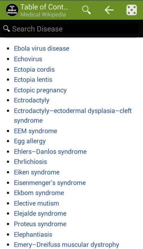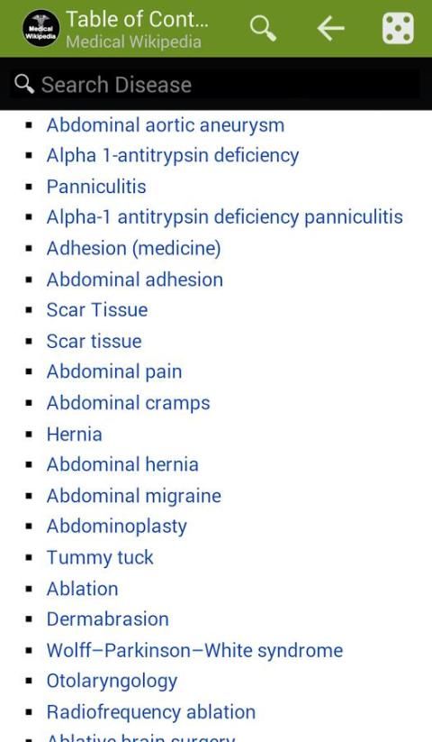 इस ऑफ़लाइन मेडिकल विकिपीडिया मेडिकल विकिपीडिया लेख पढ़ने के लिए प्रयोग किया जाता है. यह आपकी स्मृति कार्ड या फोन स्मृति के कम जगह में रह रहे हैं इतना है कि मेडिकल विकिपीडिया लेख एकत्र किया गया है. मेडिकल विकिपीडिया केवल AZ रोगों (लगभग 3,000 चिकित्सा चित्रों के साथ रोगों) और नहीं अन्य स्वास्थ्य की स्थिति में हैं.