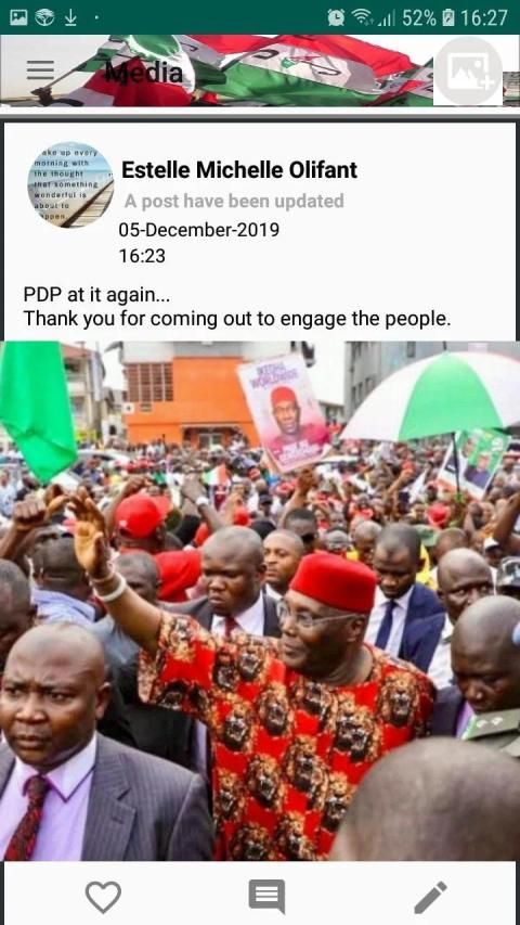 The intention of the app is to connect the people to the party leaders. This app provides a platform where the people can engage the party directly and visa-versa. The party will be able to get a clearly understanding of social, economical and environmental issues plaguing the communities and they will finally have an opportunity to see things from the peoples perspective thus being in a better position to attend to the core and fundamental problems. The party is not always able to reach everyone but is making efforts to place focus where it is urgently needed and to tackle the problem areas one step at a time. The party also hopes to get constructive and valuable feedback from the people so that the party may genuinely serve the people to the best of its ability. People can share post messages and information in an interactive manner to inform the party of the areas that needs urgent attention.
