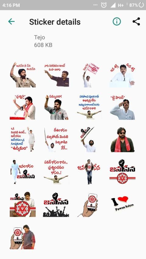 Here is the new app for Pavan Kalyan Janasena Followers in this app we created Pavan Kalyan Janasena stickers and text stickers for wats app .
