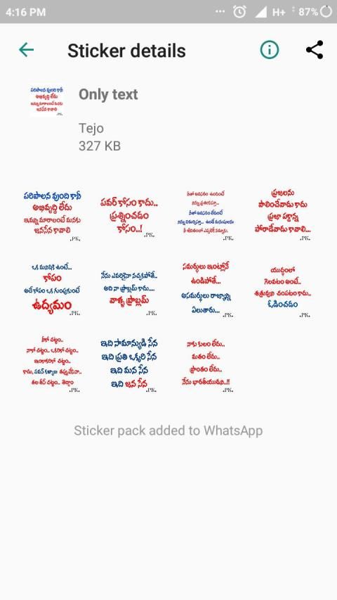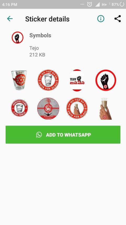 2. फिर पवन कल्याण जनसेना स्टिकर एप्लिकेशन से अपने पसंदीदा स्टिकर चुनें।