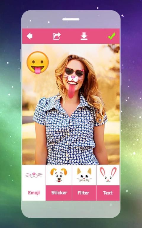 इस आवेदन इमोजी में, फसल, बारी बारी से और फिल्टर biedt आप अपनी तस्वीर अधिक beautiful.You अलग अलग आकार में अपनी तस्वीर canset बनाने के लिए, यह एक अच्छी सुविधा या फोटो merger.Whenever है, अपने कैंडी फिल्टर सेल्फी और संपादित तस्वीर मिलता है। मेकअप द्वारा संपादित फोटो प्रभाव आप पेशेवर स्तर पर या स्टूडियो हासिल कर सकते हैं।