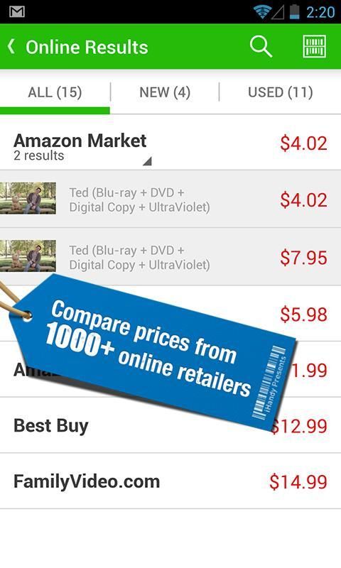 - खोज कीमतों और आदि अमेज़न, वॉलमार्ट, ईबे, BestBuy, Buy.com, जैसे लगभग हर प्रमुख फुटकर बिक्री से उत्पाद विवरण