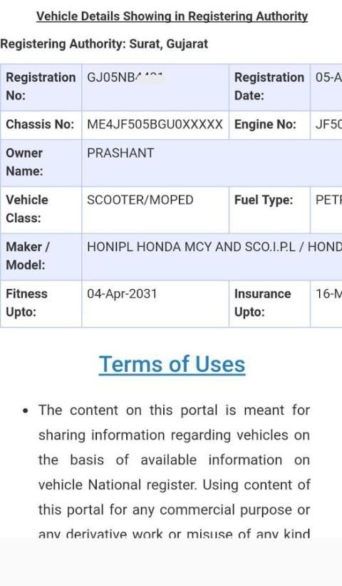 • आरटीओ वाहन मालिक का नाम।
