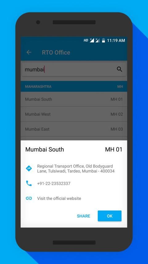 एप्लिकेशन भारत के राज्यों के लिए आरटीओ पंजीकरण संख्या सत्यापन विवरण मिल सकता है।