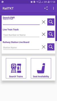 Railtkt is dedicated towards easing out the load on Indian railways by providing similar search services on Railtkt platform for zero cost. Now you can check Indian Railway PNR status | Indian Train between Stations | Indian Railway Seat Availability | Indian Train Running Status | Indian Railway Faire Enquiry | Indian Railway Live Station Board status | Indian Railway Cancelled Train Status | Indian Railway rescheduled Trains Status. | Indian Railway PNR confirmation prediction