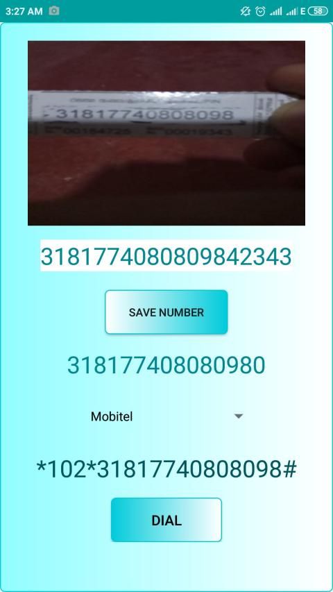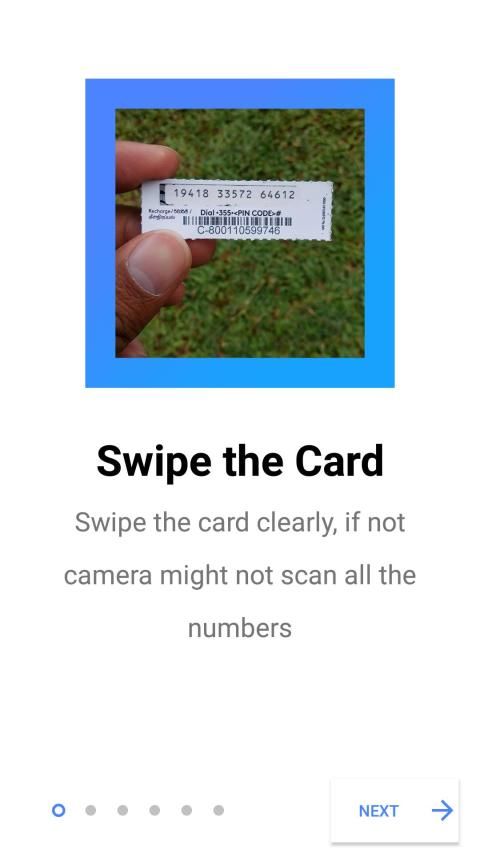 This is recharge card scanning app. with this app, you can scan the recharge card through the camera built-in this app. then all you have to do is save the number which is taken from the camera and select the service provider. then clock the dial button. you will be directed to the dial app. there select SIM 1 OR SIM 2 and dial. that's it. you can do it within 10 seconds.