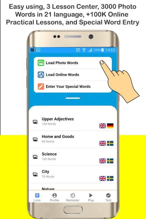 ➤ प्ले वर्ड प्लेयर, रिमाइंडर एप्लिकेशन की एक सुखद विशेषता है। उपयोगकर्ता इस वर्ड प्लेयर के साथ शब्द सूचियों को खोल सकते हैं, वे हर जगह शब्दों को देख सकते हैं और सुन सकते हैं 1 और 7 के बीच दोहराने की संख्या का चयन करें। यह सुविधा मानव तंत्रिका सीखने की क्षमता के बारे में एक बड़े शोध के साथ विकसित हुई है इसलिए यह दोहराव, दृश्य और श्रवण चित्र और मुखरता केवल स्थायी और मजबूत सीखने के लिए है।