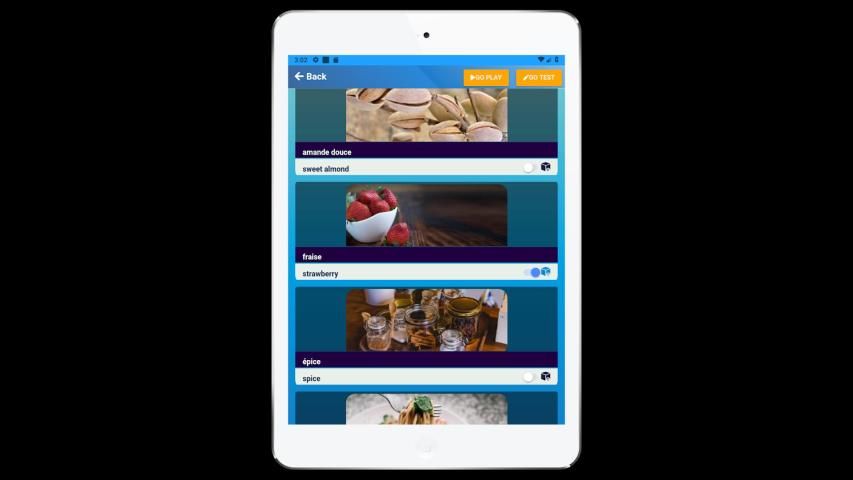 ➤ टेस्ट एक बहुविकल्पी परीक्षण है लेकिन न्यूरो लर्निंग रणनीति के अनुसार एक अलग डिजाइन है। उपयोगकर्ता तेजी से "गो टेस्ट" बटन का उपयोग करके अपनी सूची खोल सकते हैं या मुख्य मेन्यू टेस्ट ज़ोन विकल्प के माध्यम से खोल सकते हैं। तब उपयोगकर्ता सीखने की प्रक्रिया को मजबूत करने के लिए परीक्षण शुरू कर सकते हैं। टेस्ट ज़ोन को एक अद्वितीय बहु विकल्प विकल्प मिला है जो उपयोगकर्ता कर सकते हैं