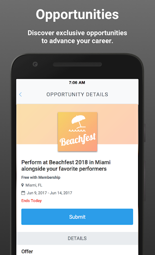 - केवल एक टैप के साथ नए गाने, शो, वीडियो और फ़ोटो जोड़ें - अनन्य, करियर-अग्रिम अवसरों को सबमिट करें