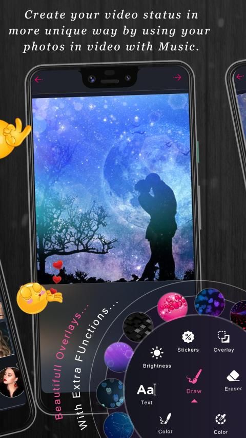 9Apps supports free android apps apk download. 30,000+ users downloaded Romantic Lyrical Video Status Maker With Photo And Song latest version on 9Apps for free every week! All its functions are there and updated. This hot app was released on 2019-01-16. If you still need more information collecting extra factors, read below.
