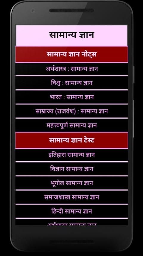 एप्लिकेशन की तरह 20 से अधिक खंड में बांटा गया है: - भारतीय इतिहास; संस्कृति, विश्व भूगोल, भारतीय राजनीति, भारतीय अर्थव्यवस्था, सामान्य विज्ञान और सामान्य ज्ञान से युक्त सिद्धांत।