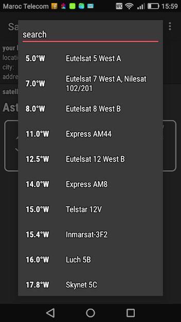 सबसे पहले, उपग्रह (जैसे कि एस्ट्रा 19.2 °) का चयन करें, जिसमें आप संतृप्त पकवान को समायोजित करना चाहते हैं।
