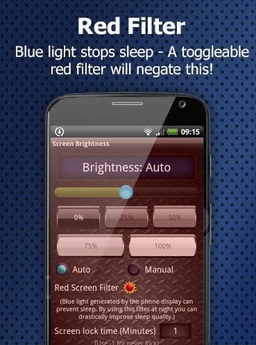 स्क्रीन चमक सामान्य Android प्रणाली की तुलना में अधिक शक्तिशाली एक चमक dimmer के रूप में काम करते हैं, और बेहतर नियंत्रण के लिए अनुमति देता है.