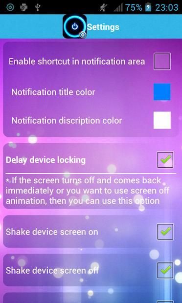 * एक क्लिक के साथ स्क्रीन बंद और लॉक डिवाइस