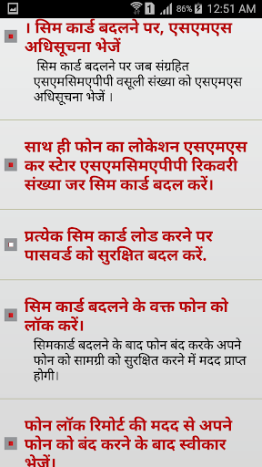 7. सिम कार्ड बदलने पर हमें एसएमएस द्वारा संदेश भेजें।