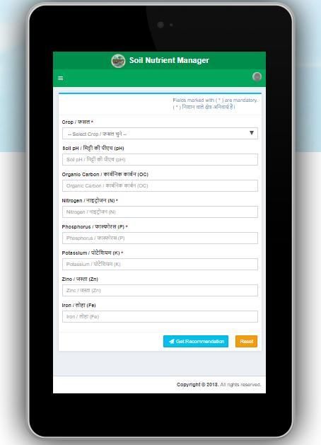 The recommendations are presently made in form of usually used fertilizers commonly available to the farmers, for the major Rabi and Kharif crops grown in eastern region. In this app, farmers, agriculture professionals or the other users are required to put the nutrients availability status of their soil, crops to be grown and fertilizers to be used to get the ready-made fertilizer recommendations.