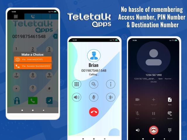 एक वीओआईपी सेवा प्रदाता के रूप में, आप अपने ग्राहकों को दो फायदे की पेशकश कर सकते हैं Teletalk Hybrid मोबाइल डायलर उन्हें वीओआईपी कॉल अपने मोबाइल फोन के साथ-साथ एक स्वचालित तरीके से कॉलिंग कार्ड का उपयोग करने की सुविधा देता है।