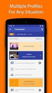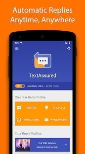 TextAssured आप अपने फोन की व्याकुलता से मुक्ति अनुमति देता है। यह एक स्वचालित रिसेप्शनिस्ट, जो दोनों अनुकूलित और व्यक्तिगत पाठ प्रतिसाद भेजता में बदल देती है।