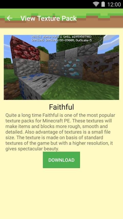 तुम सब करने की जरूरत एप्लिकेशन डाउनलोड, अपने पसंदीदा बनावट पैक क्लिक करें, फिर डाउनलोड बटन पर क्लिक करें। डाउनलोड तेज, और सरल है। बनावट पैक स्वचालित रूप से स्थापित और आप के लिए Minecraft में जोड़ा जाता है।