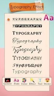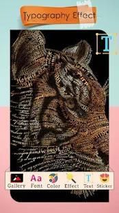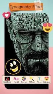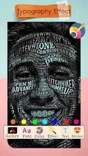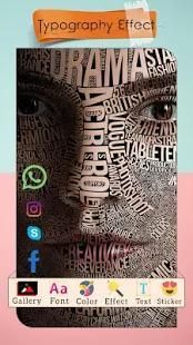 टाइपोग्राफी फ़ोटो संपादक कलाकार जिसमें आप अपने टाइपो प्रभाव तस्वीरें बना सकते हैं एक अभिनव फोटो निर्माता अनुप्रयोग है।