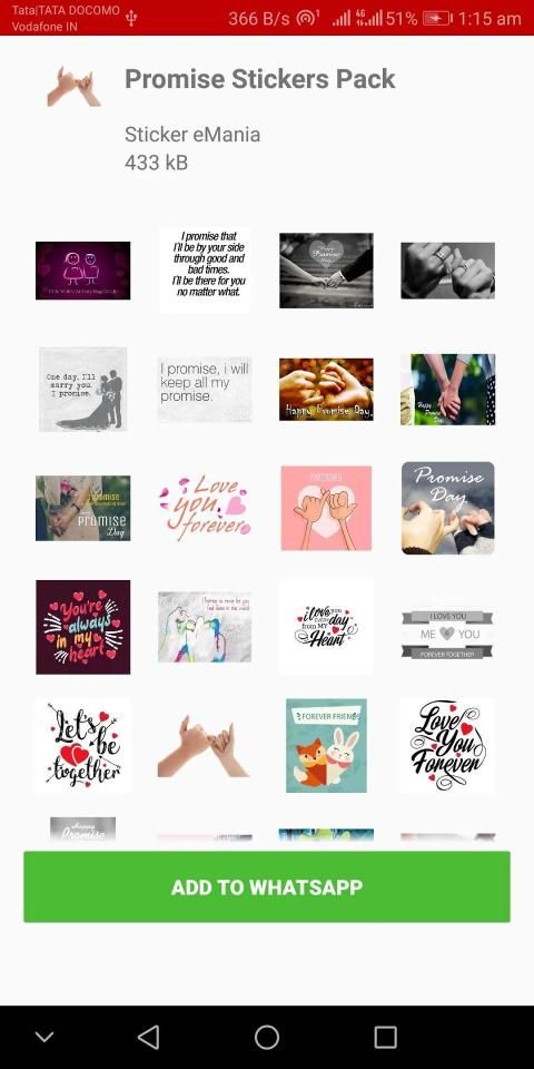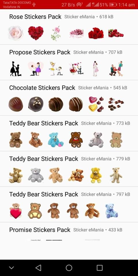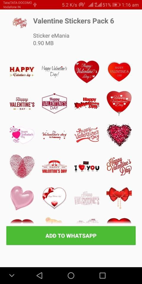 इस ऐप को इंस्टॉल करें और जिस पैक को आप चाहते हैं उसे क्लिक करके बस इसे अपने व्हाट्सएप में जोड़ें और आपको वेलेंटाइन डे की शुभकामनाएं दी गई हैं।