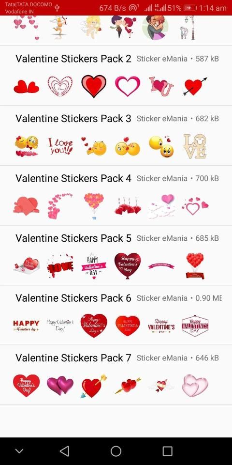 - ओपन ऐप चुनें वेलेंटाइन स्पेशल स्टिकर पैक का चयन करें या एक श्रेणी चुनें