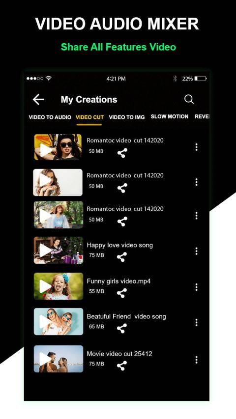 Cut video with this tools and video trimmer is best function with add audio to video and Mix audio in video.Fade in out is also available in this app.