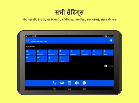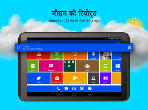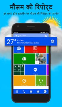 WP 8 लांचर आपको अपने होम स्क्रीन पर मौसम की भविष्यवाणी की जानकारी प्रदान करता है जैसे शहर का तापमान, शहर का नाम, मौसम का प्रकार और आप तापमान दृश्य पर क्लिक करके अपने शहर को बदल सकते हैं या खोज सकते हैं।