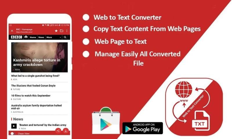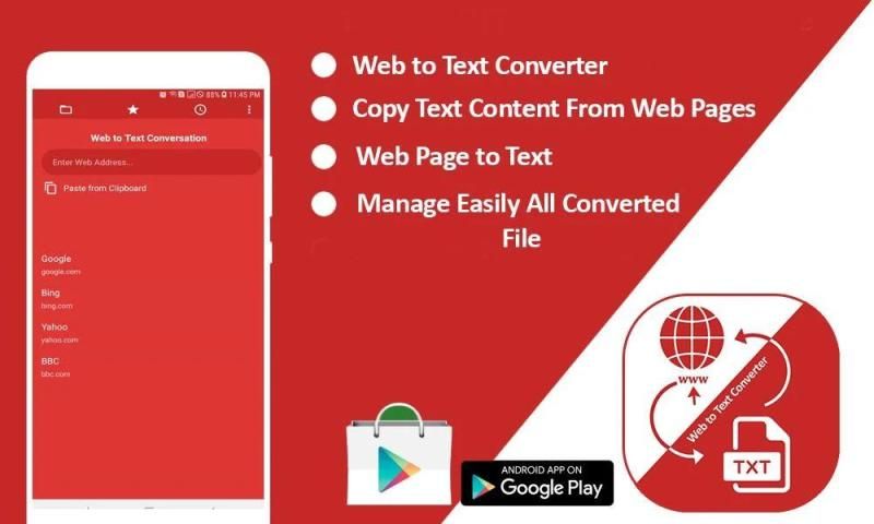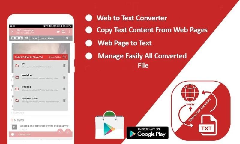 इस सबसे अच्छे ऐप से आप टेक्स्ट फॉर्मेट के प्रारूप में किसी और के साथ साझा करने के लिए ऑफ़लाइन पढ़ने के लिए वेब पेज आसानी से सहेज सकते हैं। आप बहुत आसानी से किसी भी वेब पेज को टेक्स्ट फाइल में बदल सकते हैं, आप वेब पेज से सभी टेक्स्ट कंटेंट प्राप्त कर सकते हैं और ऑफलाइन पढ़ने के लिए सिंगल टेक्स्ट फाइल में स्टोर कर सकते हैं।