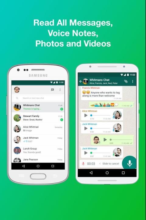 - चैट पढ़ें, उत्तर चैट करें, वॉइस नोट्स भेजें और प्राप्त करें, फ़ोटो और वीडियो ब्राउज़ करें और भेजें।