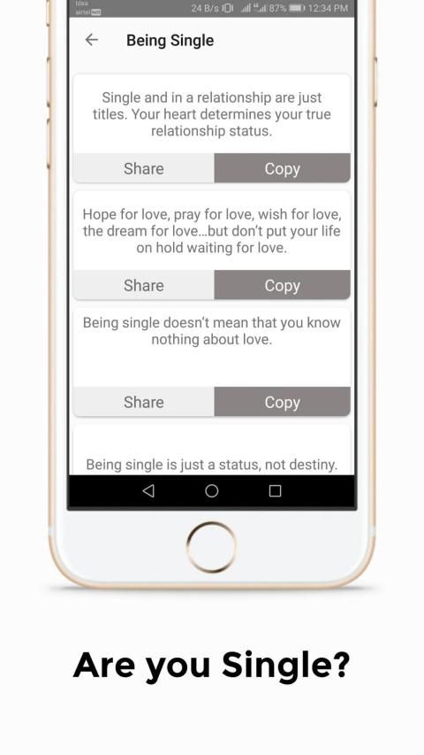 व्हाट्सएप स्टेटस कैप्शन एक सरल और हल्का ऐप है। इसे आपके एंड्रॉइड फोन से किसी भी अनुमति की आवश्यकता नहीं है। बस कॉपी, शेयर, कैप्शन पढ़ें।