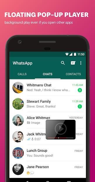 YouZik has a powerful floating pop up player which you can drag it anywhere in screen while you're doing other things, like using other apps.
