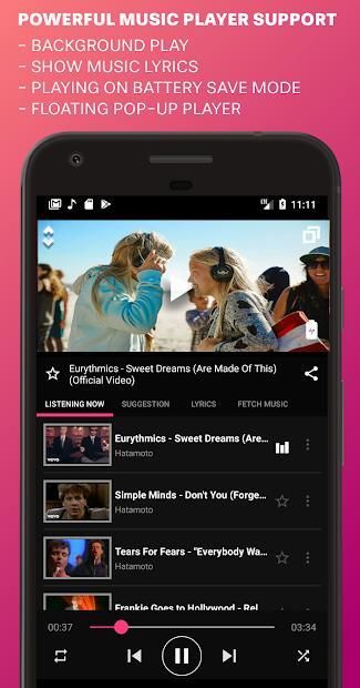 यूट्यूब से एमपी 3 म्यूजिक प्लेयर तक संगीत बजाना, पृष्ठभूमि प्ले, भले ही आप अन्य ऐप खोलें, दिखाएं ..