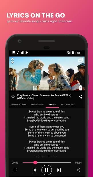 Can help you : show music lyrics, Search Music, Artists, playlist, Play in the background, Explore Manage and create your own playlist.