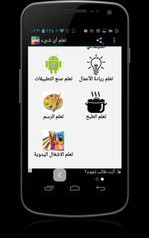 تطبيق تعلم أي شيء يحتوي على اكثر من 900 فيديو تعليمي في عدة مجالات وهي: